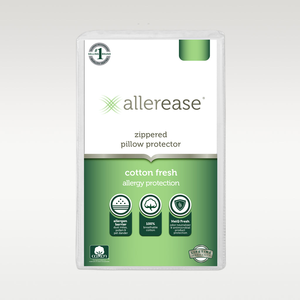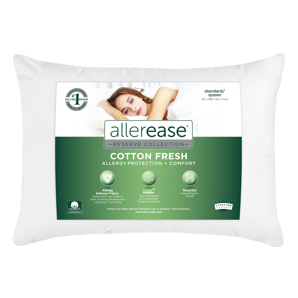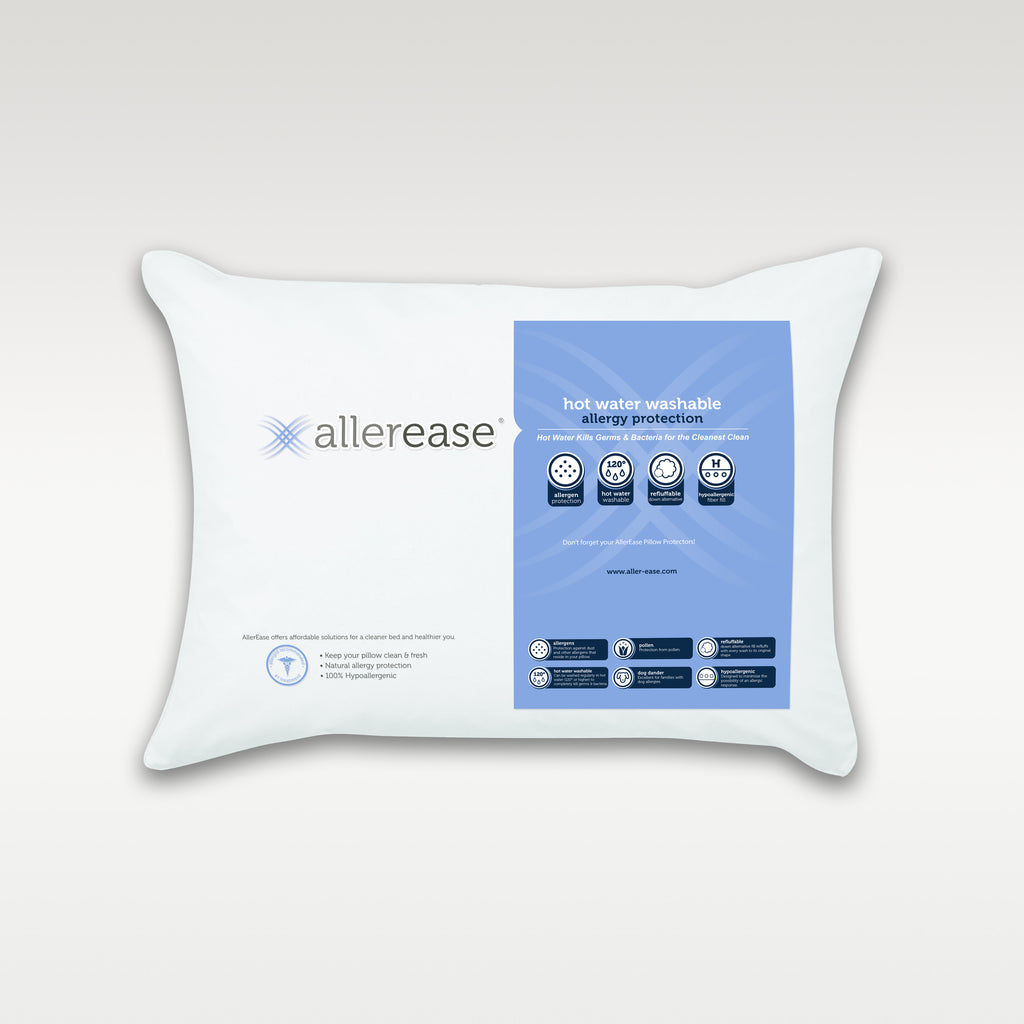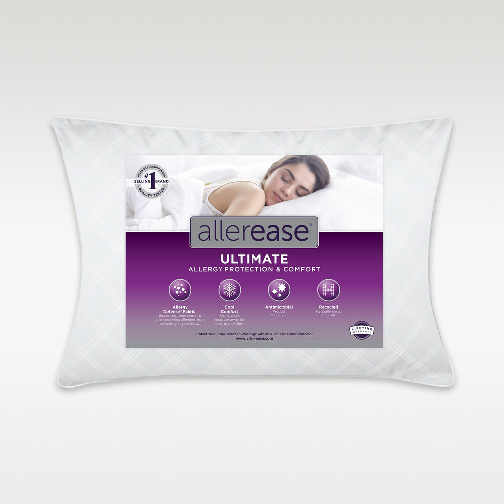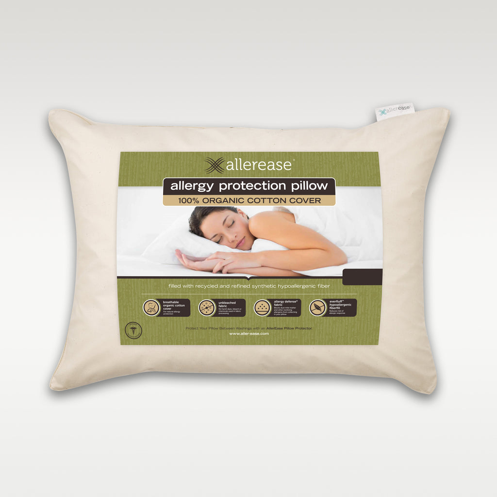 AllerEase® pillows feature luxurious hypoallergenic fiberfill and our conventional or organic Allergy Defense® fabric to block allergens from collecting in your pillow, so you get a happy, healthy night’s sleep.